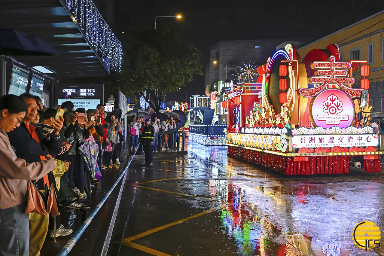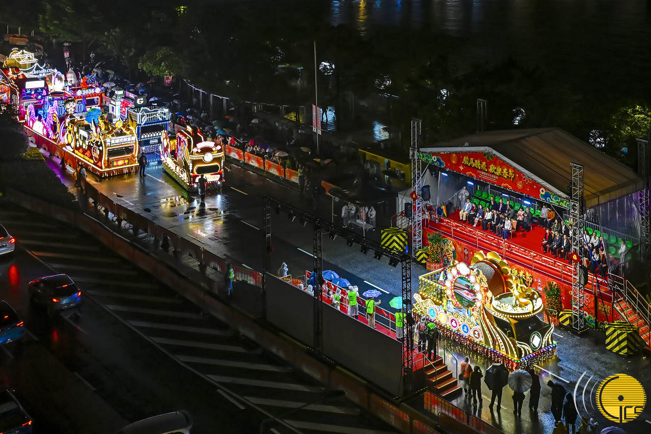 第二场“骏马腾飞欢乐春节2026农历新年花车汇演”在北区上演,花车途径北区多条马路,沿途吸引不少居民及旅客驻足欣赏。