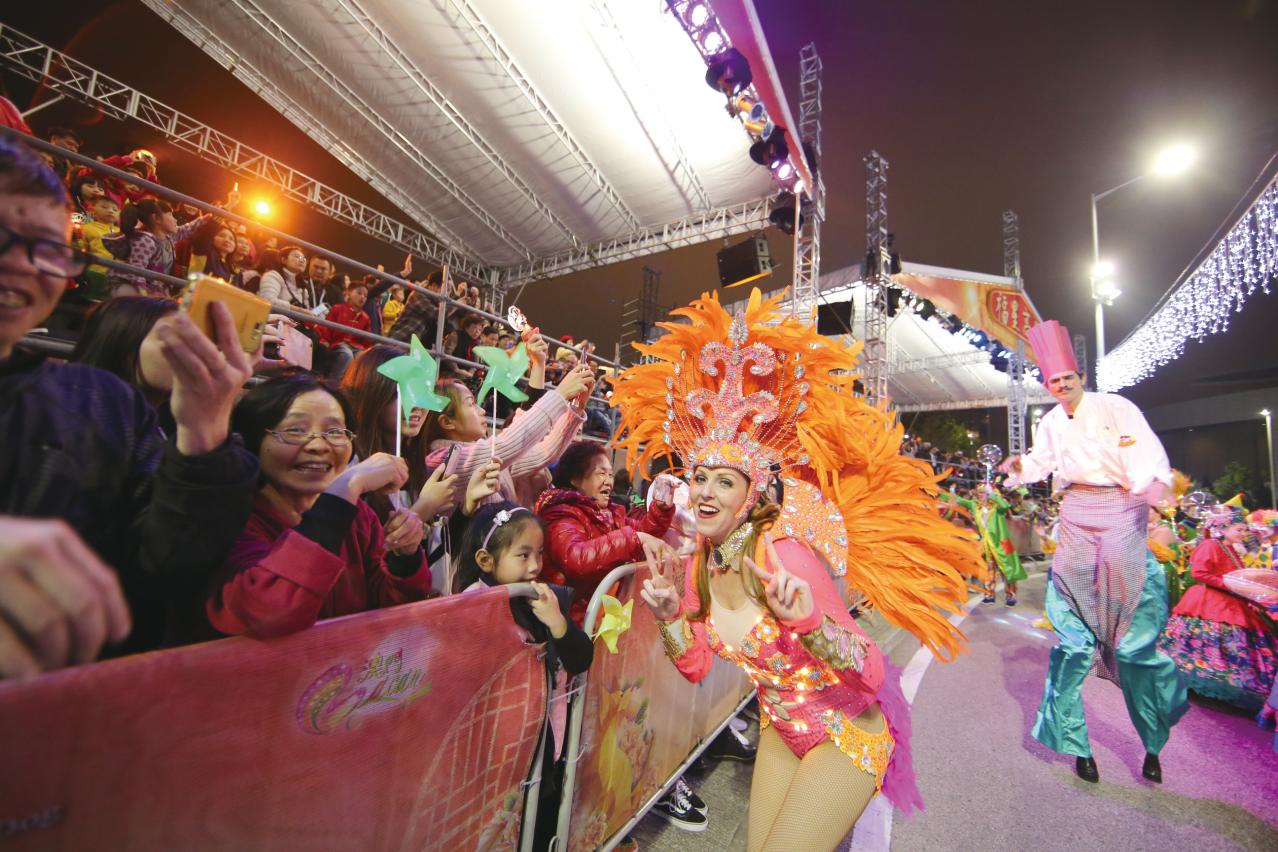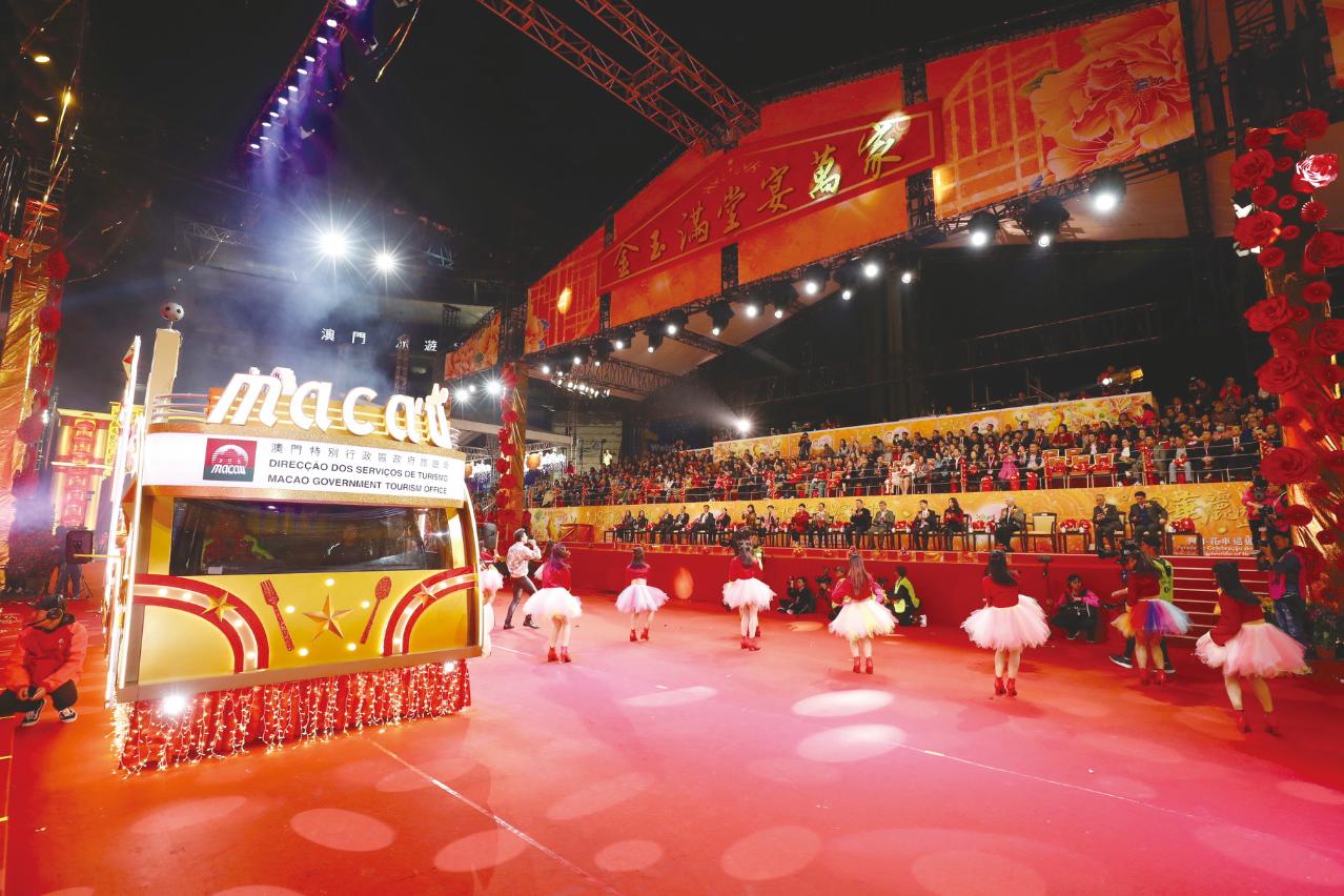 年初三及年初九晚上,大型贺岁活动“华丽盛宴旺财年狗年花车巡游汇演”,继续为市民及游客送上精彩热闹的表演。活动故事背景以“灵犬旺财送福队”在过去12年收集到的福气,以及佳肴美食带作为福礼,在花车巡游汇演的华丽盛宴中,向全澳市民及旅客送上福气、健康和财富。