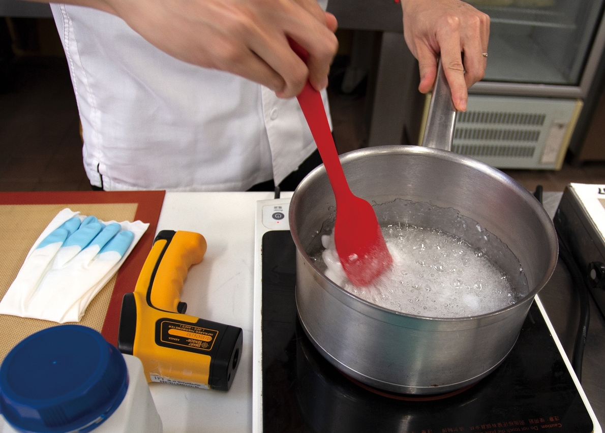 为使糖身保持合适温度,完成抛光后须把糖置于恒温灯下等待使用。当糖身回复适当软硬度时,便可开始制作。拉糖时建议糖块在较低温度下进行,这样雕塑不易变形,亦能保持良好光泽。