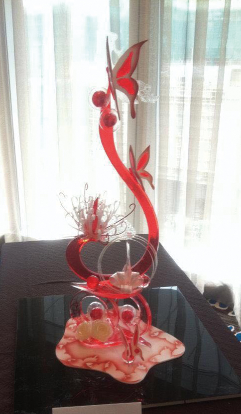 要想取得好成绩,拉糖成品各方面都需要达到一定的要求,例如,糖身要薄、富有光泽、设计特别、难度及观赏性要高。因此,每当学生出外参赛前,刘择祥都会为学生进行特训,并提供设计意见。