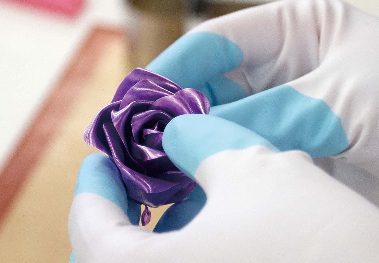 看着糕点师将糖胶一拉、一捏、一拔……,三两下便做出一朵美丽的玫瑰,看似轻松简单,其实是经过无数次尝试实践才能成功。要令拉糖作品保持优美形态,离不开平时的勤学苦练。刘择祥表示:「对我来说,最难的莫过于制作动物及各种人物的五官,因五官需要配合拉、吹、塑形等技术,制作手法复杂,要求精细,只要一个部位做得不好,便会影响整件作品。因此,若时间紧迫,我们只好倒模制作。至于细节,通常会待作品冷却后,以加热工具于糖面上细细刻画。」
