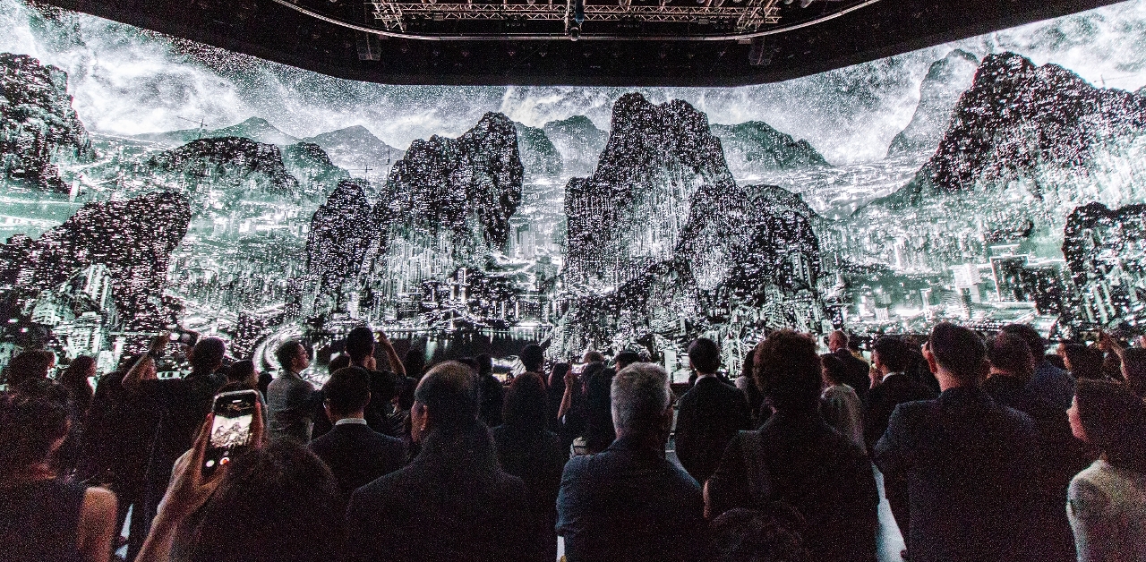 传统水墨画,是通过笔、墨、纸、砚的结合而完成,但随着时代的进步,科技的创新,水墨的呈现方式变得不再单一。《夜游记二》便是以当今最先进的影视科技(8K解析度)为媒介,让观众细阅城市的流动变化,感受水墨的优美。