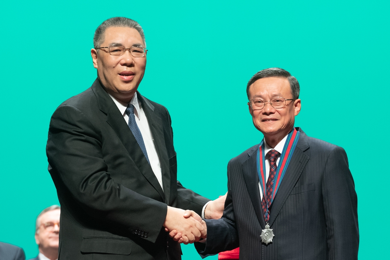 行政长官崔世安根据勋章、奖章和奖状提名委员会的建议,于2019年11月22日下午在文化中心,向44名人士或实体代表颁授了勋章、奖章和奖状,表扬他们在个人成就、社会贡献或服务澳门特别行政区方面有杰出的表现。