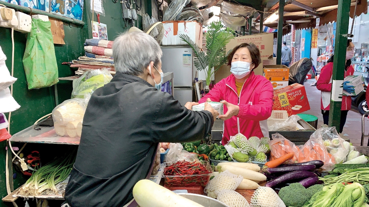 随着政府推出口罩供应计划,澳门市民可到各售卖点购买口罩,但不少长者难以支撑长时间的轮购过程,为此,街总特别上门帮助行动不便的长者,其辖下9个服务点亦协助政府售卖口罩,减少长者的轮候时间和群聚带来的风险。另外,街总亦对物资短缺的长者家户,分发由热心企业捐赠的新鲜蔬菜和消毒用品,让弱势群体在逆境中感受到温暖的关怀。
