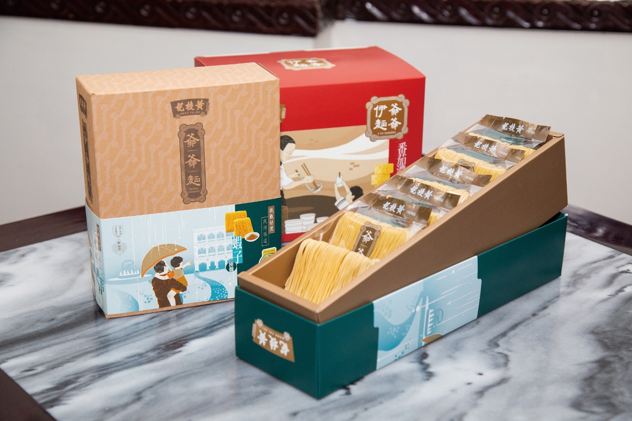 近年,黄枝记推出了礼品面系列产品,赋予了面食全新的概念。由黄与飞研发的“爷爷面 - 虾子捞面”,便于2019年获得了世界四大美食奖之一的世界品质品鉴大会金奖。谈及爷爷面,黄与飞脑海中浮现的,满是对爷爷的回忆。“我小时候常跟着爷爷到处觅食,爷爷精益求精,尝试了别家的面后,会钻研改良自家出品,我因此与面结缘,亦促成了爷爷面的诞生。”
