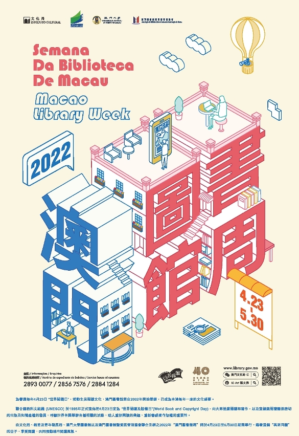 因应4月23日联合国教科文组织订定的「世界阅读日」,文化局今年继续联合教育及青年发展局、澳门大学图书馆及澳门图书馆暨资讯管理协会主办2022年「澳门图书馆周」活动,为不同年龄层的儿童及家长,举办有关亲子关系经营与沟通技巧的讲座。