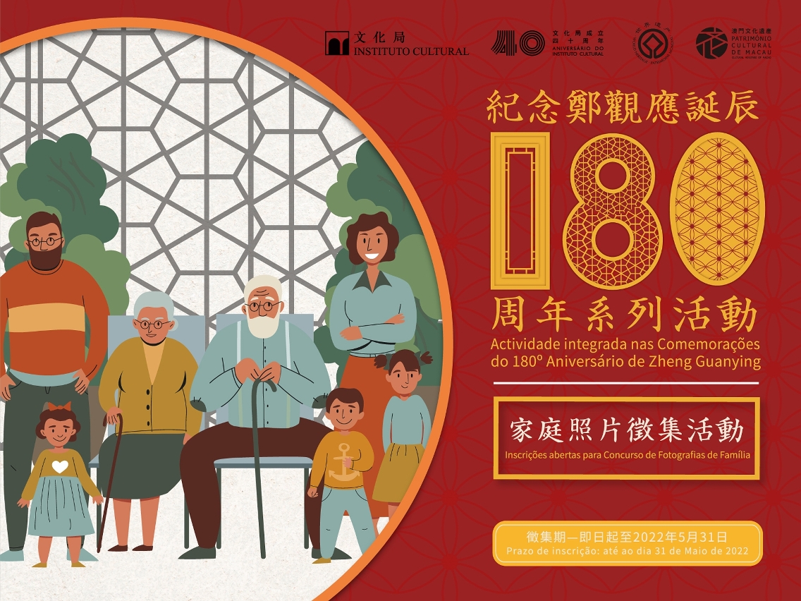 「家庭照片征集活动」,以家庭活动的形式鼓励市民及游客带同家人到访「郑家大屋」,藉此宣扬共同传递保护澳门文化遗产的讯息。市民和游客可把在郑家大屋拍摄的家庭照片投稿,分享与家人在郑家大屋留下的美好时光。(征集活动已于5月31日结束)