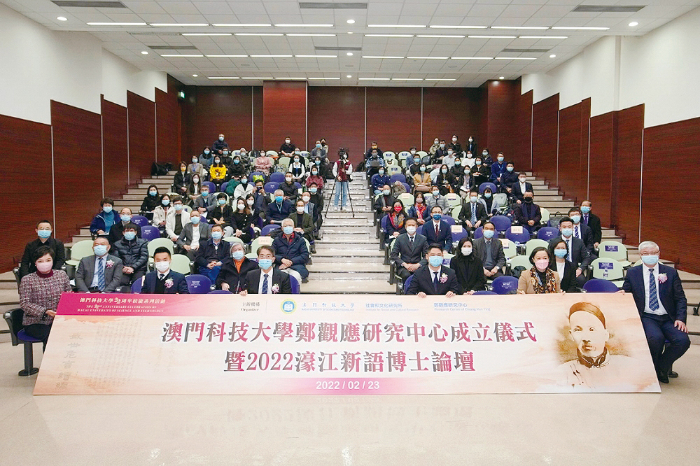 澳门科技大学郑观应研究中心成立仪式于2月23日举行,同日举行2022濠江新语博士论坛。澳门科技大学校长李行伟讲座教授在仪式上指出:郑观应毕生致力于国家富强的思考、探索和实践,是我国近代具有完整改革思想体系的启蒙思想家。他在《盛世危言》等著作中针对多个领域的改革发展,首次提出『宪法』、『议会』、『商战』、『领事』、『专利』、『水利』、海南『自由贸易港』、上海『赛会』(世界博览会)以及中西医结合等论述和方案;密切观察和深度分析英、法、德、美、俄、日等国的政治、经济、社会发展状况及其与中国的利害关系;他参与织布局、电报局、招商局、汉阳铁厂、粤汉铁路等民族工商业的经营管理。一系列切合时势、切实可行的论述与实践,深深影响中国近代化进程。郑观应的爱国热情、开阔视野、深刻洞见与趋势预测,至今仍有研究价值和启示意义。