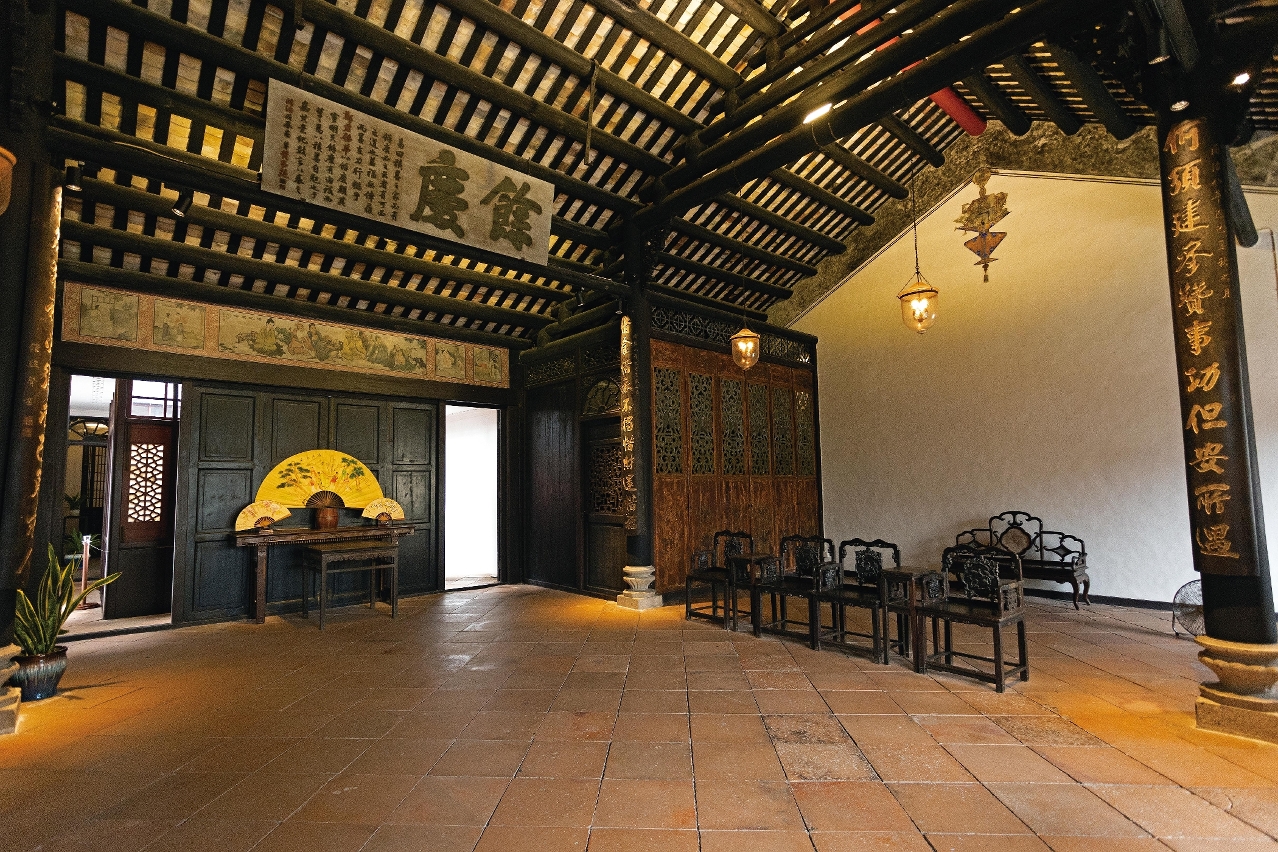积善堂的厅堂气派明显不及余庆堂,以显示主次之别。该厅堂只有一开间宽,然而,设有凹槽状西式假天花,有别于传统设计。