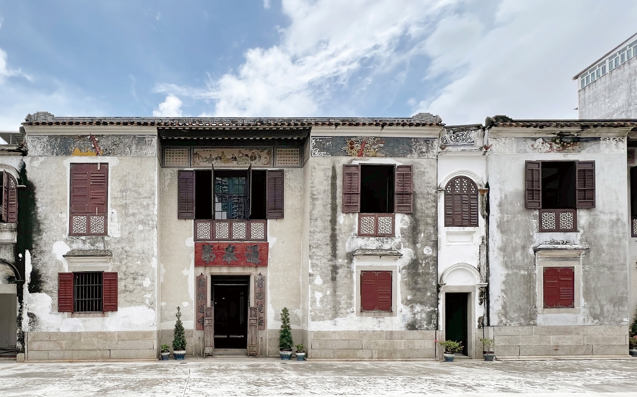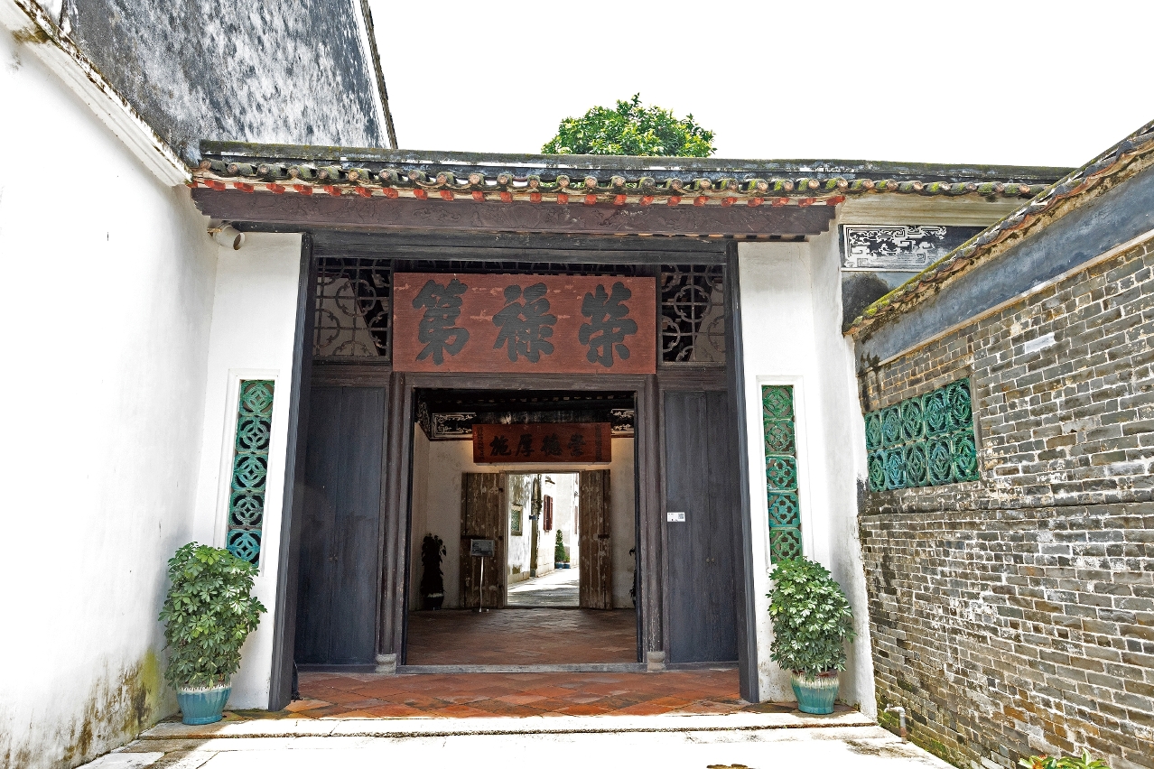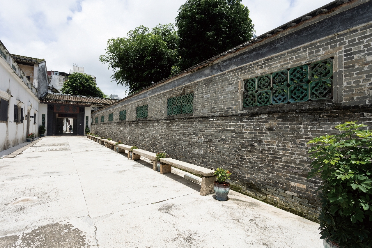 房屋间以水巷分隔,建筑外墙檐壁均有灰塑浮雕装饰,造法在岭南建筑常见,而墙基则由花岗石砌筑而成,两个主入口,都采用与宅门入口相同的凹斗式设计,即是自檐口往内凹,与外墙身不处在同一直线上,而为显示其重要性,门框更以花岗石作材料,其中最重要的建筑入口更以两重花岗石门框设计。