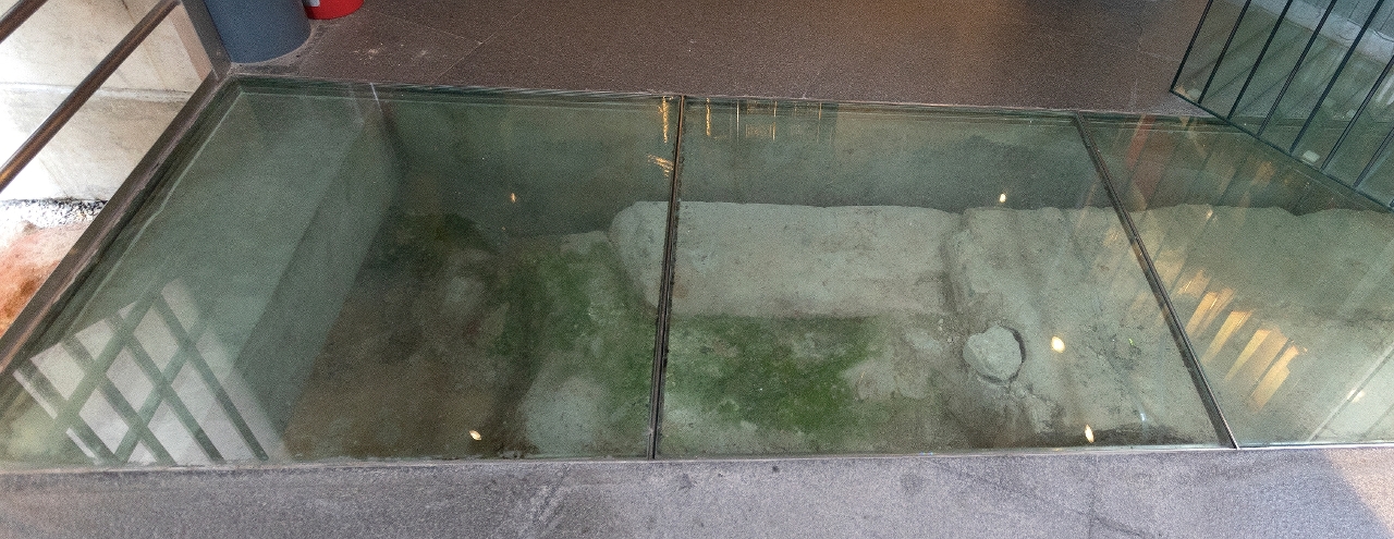 由于考古发现的墙基处于室外的路面一米多以下,对该墙基原址保存及展示,认为需要考虑地下水份对墙基可能产生的影响,因此,在新建筑基础方案修改的同时,在旧墙基外侧约半米处建造了地下截水墙以防止地下水渗入墙基,另外也设置了去水处,以备遇水淹墙基时能排走积水(幸好,水淹的情况自建成后从来没有发生)。至于对墙基的展示,用玻璃覆盖是最常用的选择,然而,由于澳门春夏季潮湿多雨,如果以玻璃将地下墙基遗址完全封闭,会增加遗址的湿度,除了会生出青苔植物,玻璃也经常被水气遮掩(这情况在大三巴牌坊遗址的展示区常常发生), 因此,设计时在玻璃两侧留下了通风口,以自然通风减低墙基遗址的水份。