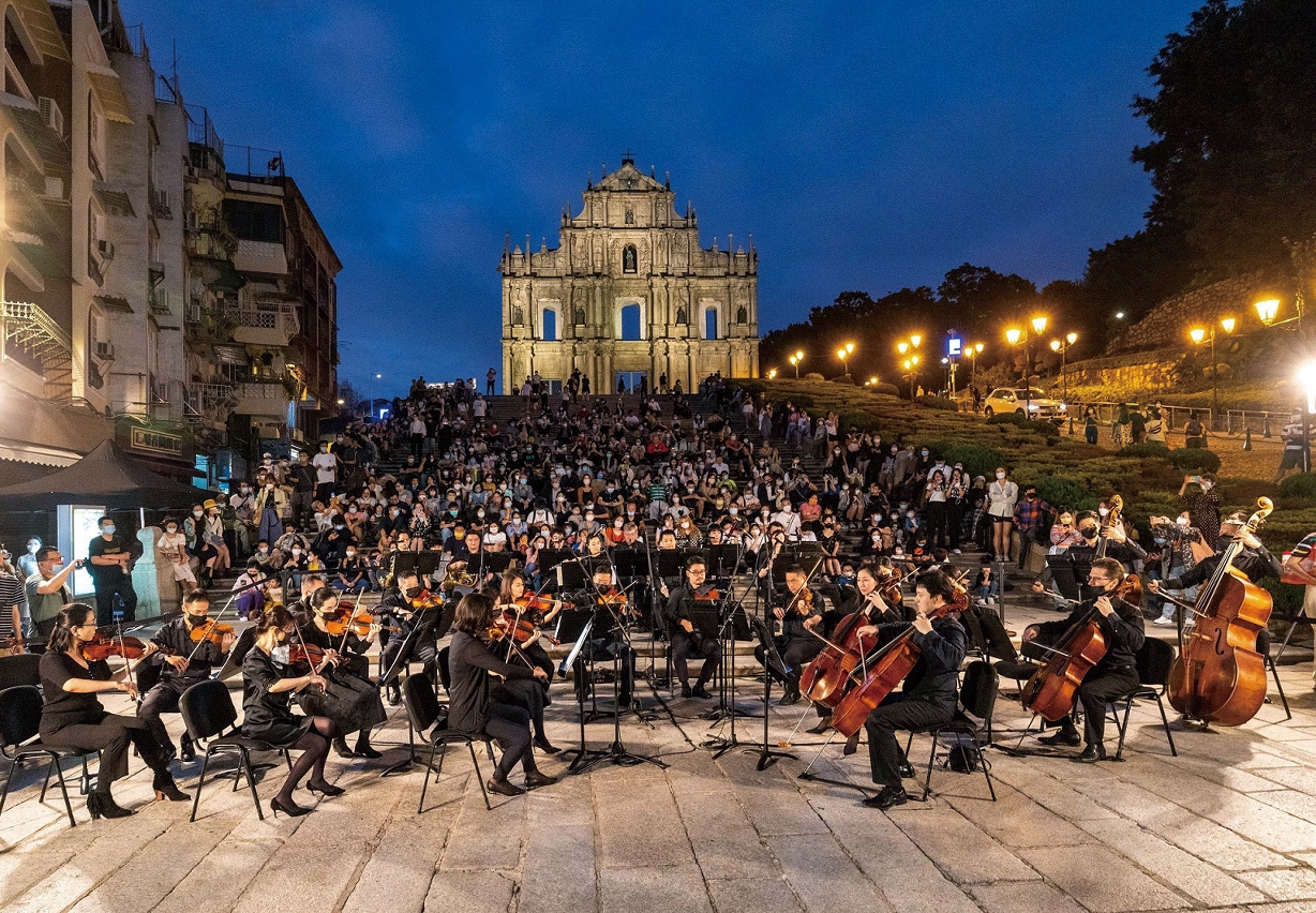 由澳门乐团及澳门中乐团轮番于大三巴牌坊前上演的「乐韵悠扬大三巴」,透过演奏多首古今中外经典作品,为市民及旅客带来独特的音乐体验,发挥文化与旅游的联动效应,让美妙旋律回荡于世遗景区。