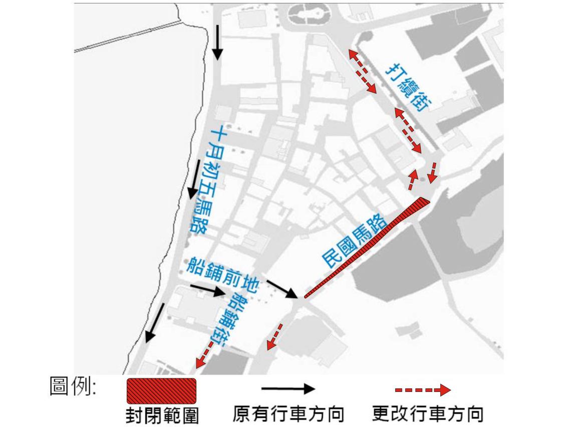 民政总署续进行第三阶段更换路环压力渠工程,1月24日(周三)至2月13日(周二),介乎民国巷与打缆前地之间的一段民国马路封闭交通;介乎民国巷与菜园巷之间的一段民国马路、及介乎船铺前地与谭公庙前地之间的一段民国马路实施反方向行车;路环登峰路近民国马路的一段道路实施有限度通车;而打缆街则实施双向行车。