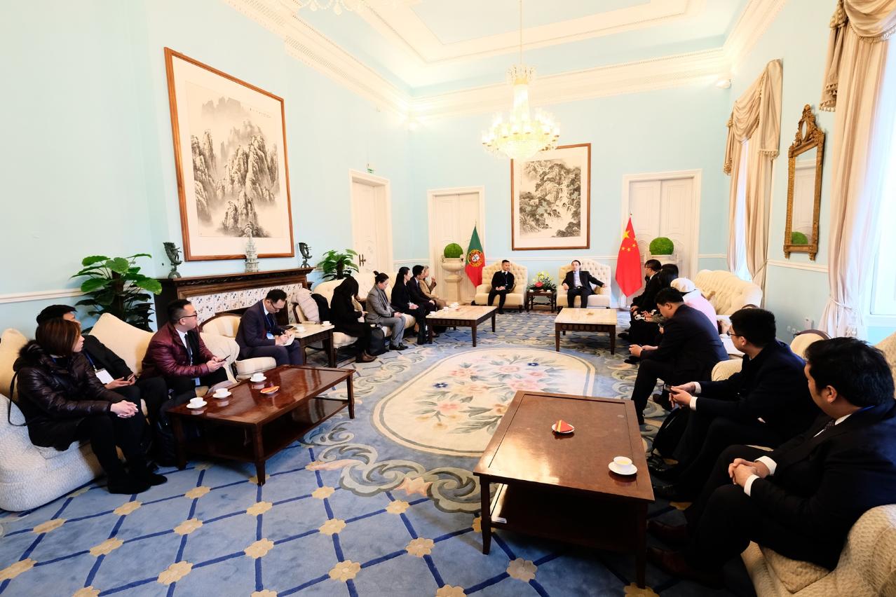为进一步推动中葡青年创新创业交流合作,发挥“中葡青年创新创业交流中心”作为内地、澳门与葡语国家的初创企业汇聚交流平台的作用,经济局组织澳门贸易投资促进局、澳中致远投资发展有限公司、深圳前海青创机构以及十一个本澳青年社团的代表等一行二十人,于二月五日至十一日前往葡萄牙里斯本及波尔图开展青创交流活动。期间,在澳门驻里斯本经济贸易办事处主任柯天莲的陪同下,交流团首先拜访了中国驻葡萄牙共和国特命全权大使蔡润先生,蔡大使向交流团介绍了葡萄牙的经济发展以及中葡近年的投资及经贸合作情况。蔡大使表示中葡经贸投资合作渐趋密切,寄语澳门加强与葡萄牙在创业创新方面合作,发挥澳门作为中葡平台的作用。经济局戴建业局长向蔡大使介绍了此行的目的,持续推进“中葡青年创新创业交流中心”的工作以及跟进去年底推出的《中葡青年创新创业交流计划》的进行情况,希望促进澳门、内地以及葡萄牙三地青创团体交流,彼此分享经验,启发三地青创人士的创新创意。