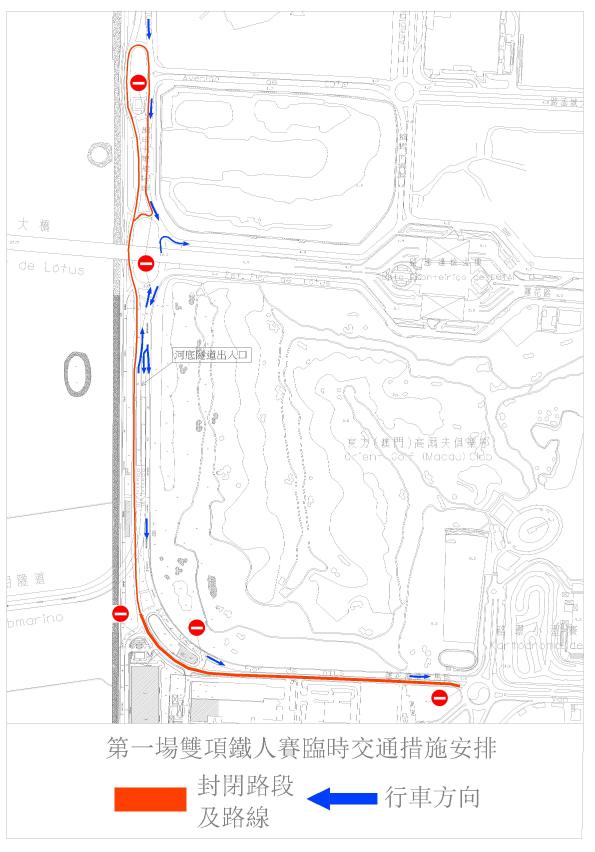 体育局3月4日(周日)举办第一场双项铁人赛,路氹城多处路段当日上午6时至10时30分实施临时交通管制,期间,52、55、71、72、73及H3巴士路线于当日上午7时45分起改道行驶,暂不停靠部份巴士站,直至赛事结束(详见附表)。交通事务局呼吁公众留意。