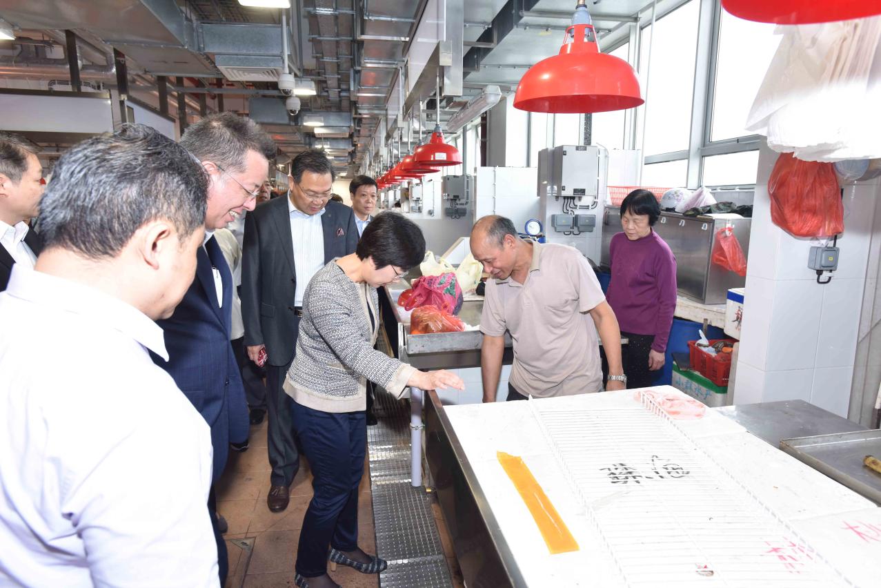 行政法务司司长陈海帆今天(三月五日)到沙梨头街市市政综合大楼视察,瞭解街市的搬迁情况并与摊贩进行交流,冀综合大楼投入使用,完善社区配套,提升居民的综合生活质素。