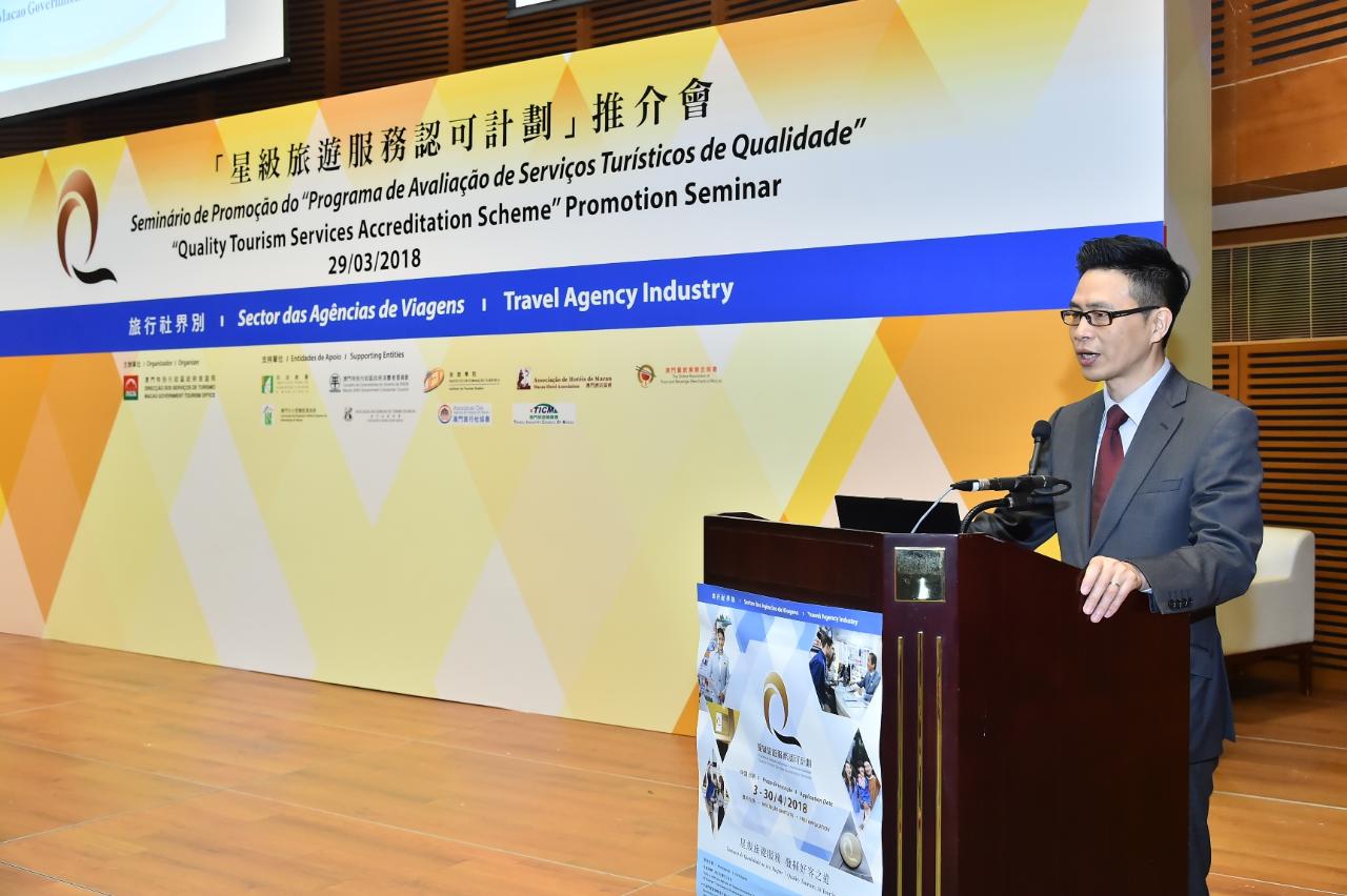 旅游局第五年推行“星级旅游服务认可计划”,并于今(29日)假澳门科学馆会议中心举行两场推介会,分别招募餐饮界别及旅行社界别的商户参加今年度的“星级旅游服务认可计划”。符合申请资格并有意参加的商户,可于4月3至30日期间向旅游局递交申请表格及相关文件。
