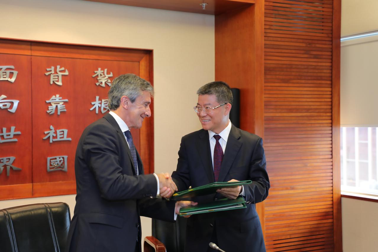 为开展中国及亚太地区对外葡语教师师资培训、持续进修,全面提升相关教学能力,澳门理工学院日前(4月11日)在汇智楼六楼会议室与葡萄牙贾梅士学会签订了合作协议书。理工学院院长李向玉与葡萄牙贾梅士学会主席刘易斯 · 法鲁 · 拉莫斯代表签署了合作协议,葡萄牙驻香港及澳门总领事域陀薛雷诺﹑东方葡萄牙协会主席若昂·内维斯,以及理工副院长严肇基、秘书长郑妙娴等见证了合作协议签署仪式。