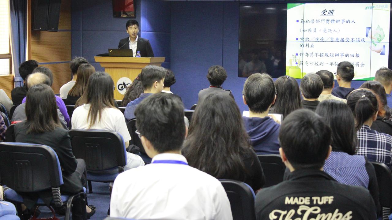 澳门生产力暨科技转移中心一向注重廉政建设工作。为加强内部人员的廉政意识,于本月举办了两场廉政专题讲座,由廉政公署代表向中心人员讲解相关法律和规定,进行廉政建设推广工作,共有百余人出席。