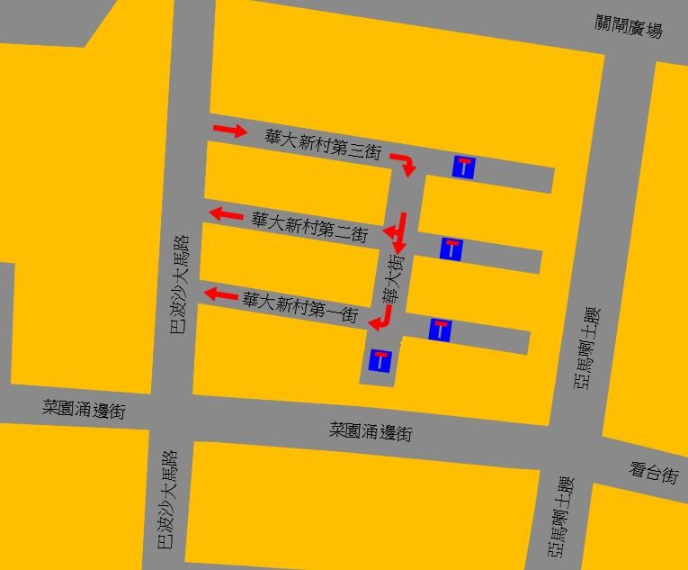 为理顺交通秩序,位于台山之华大新邨第一街、华大新邨第二街、华大新邨第三街及华大街,由4月23日(周一)上午10时起调整行车方向,届时车辆只可由巴波沙大马路驶入华大新村第三街,并经华大街通往华大新村第二街或华大新村第一街;同时,华大街近菜园涌边街路口改为无出口道路。交通事务局呼吁驾驶者留意。