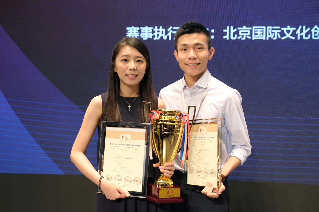 澳门大学英语辩论队在第21届“外研社杯”全国大学生英语辩论赛中,力压全国100多支强队夺得季军,辩手张海琳和冯焯弘在224名辩手中并列第五。