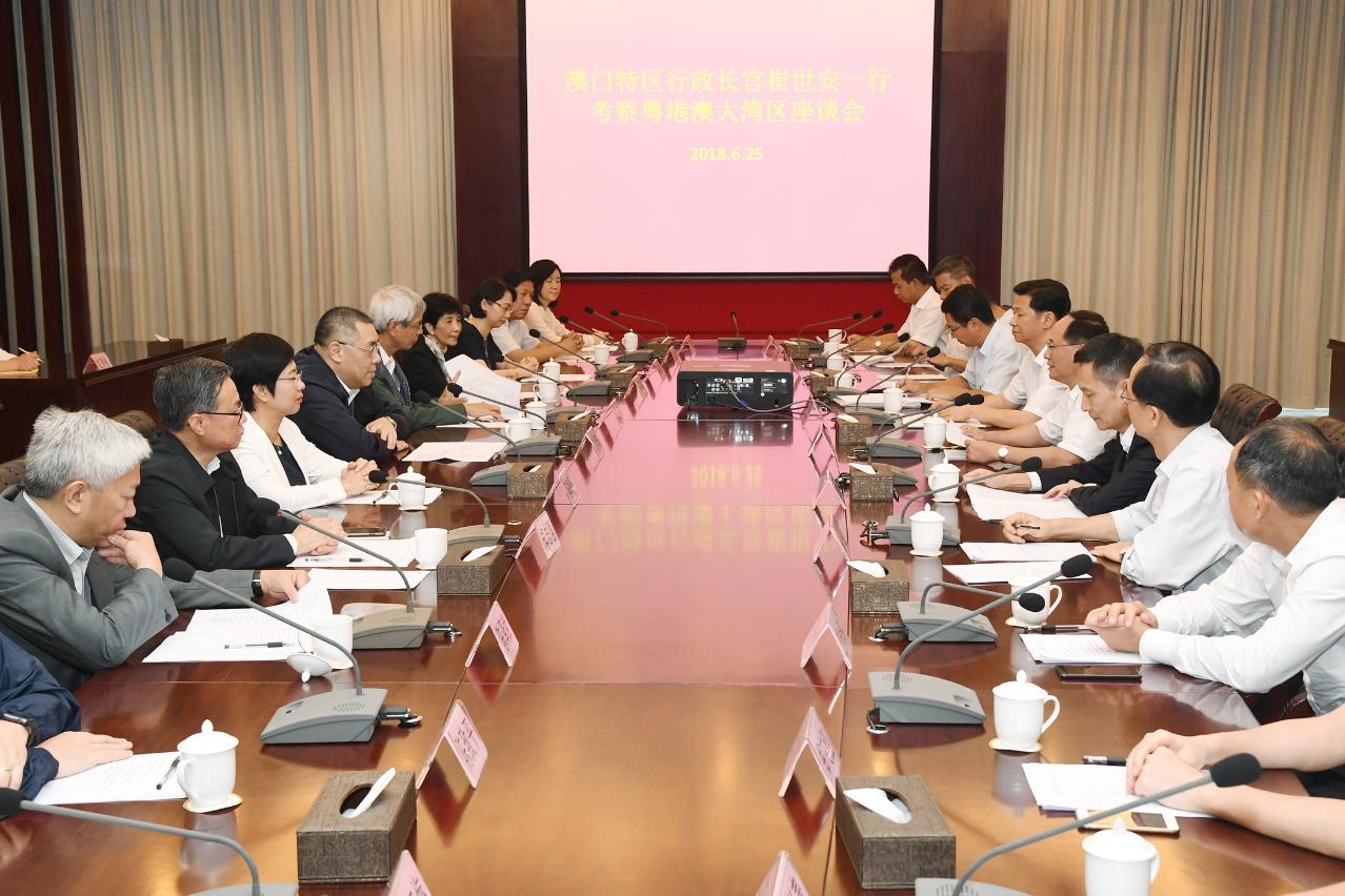 行政长官崔世安一行今(25)日下午与江门市委书记林应武等举行座谈会。崔世安表示,随着粤港澳大湾区规划即将出台,希望藉着澳门和江门共同参与大湾区建设,进一步深化两地间的合作。