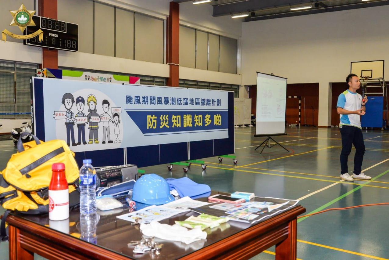在“迎新聚旧竞技会”当天,治安警察局为新旧小警苗准备了多项有益身心的团队竞技游戏以及精彩丰富的体验活动,包括小警车驾驶、警犬教学、装备展览及试穿等,现场气氛热烈。此外,踏入台风季节,活动亦加入了“防灾知识合多啲”的教学环节,从提早准备好用水、粮食、应急药物、生活用品,到灾害发生时应如何遵照民防架构发出的指示和呼吁,尽早远离低洼地区,及时疏散到安全的地方暂避,保障一家大小的安全程序,都一一透过互动和展示的方式,向各位小警苗和同事们进行介绍,整个教学寓学习于游戏,务求令防灾的意识从小渗透到参与者的脑海里,达到防灾从小警苗开始做起。