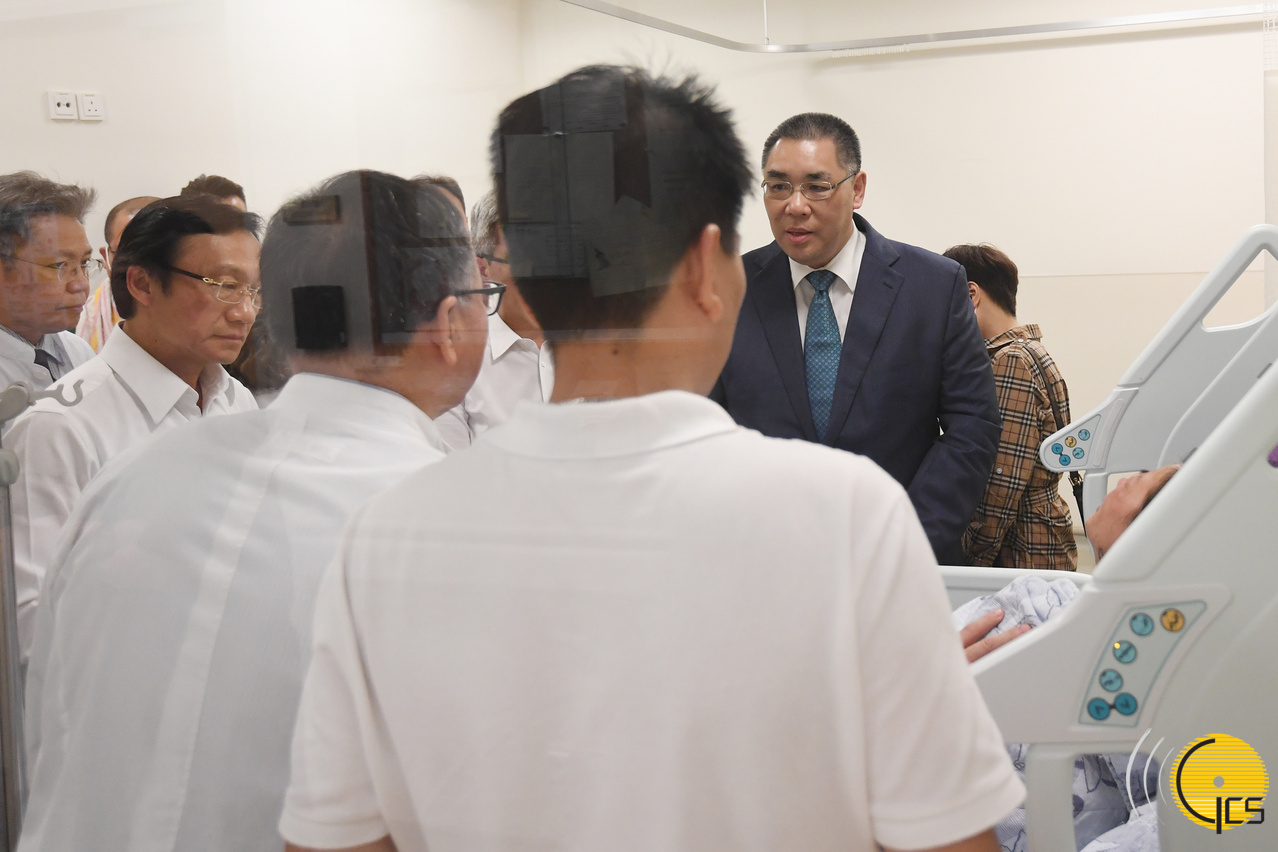 其后,崔世安与黄少泽、谭俊荣和马耀权一行转到仁伯爵综合医院,在卫生局局长李展润、社会工作局局长黄艳梅、卫生局副局长兼仁伯爵综合医院院长郭昌宇、仁伯爵综合医院医务主任李伟成陪同下,探望和慰问伤者。