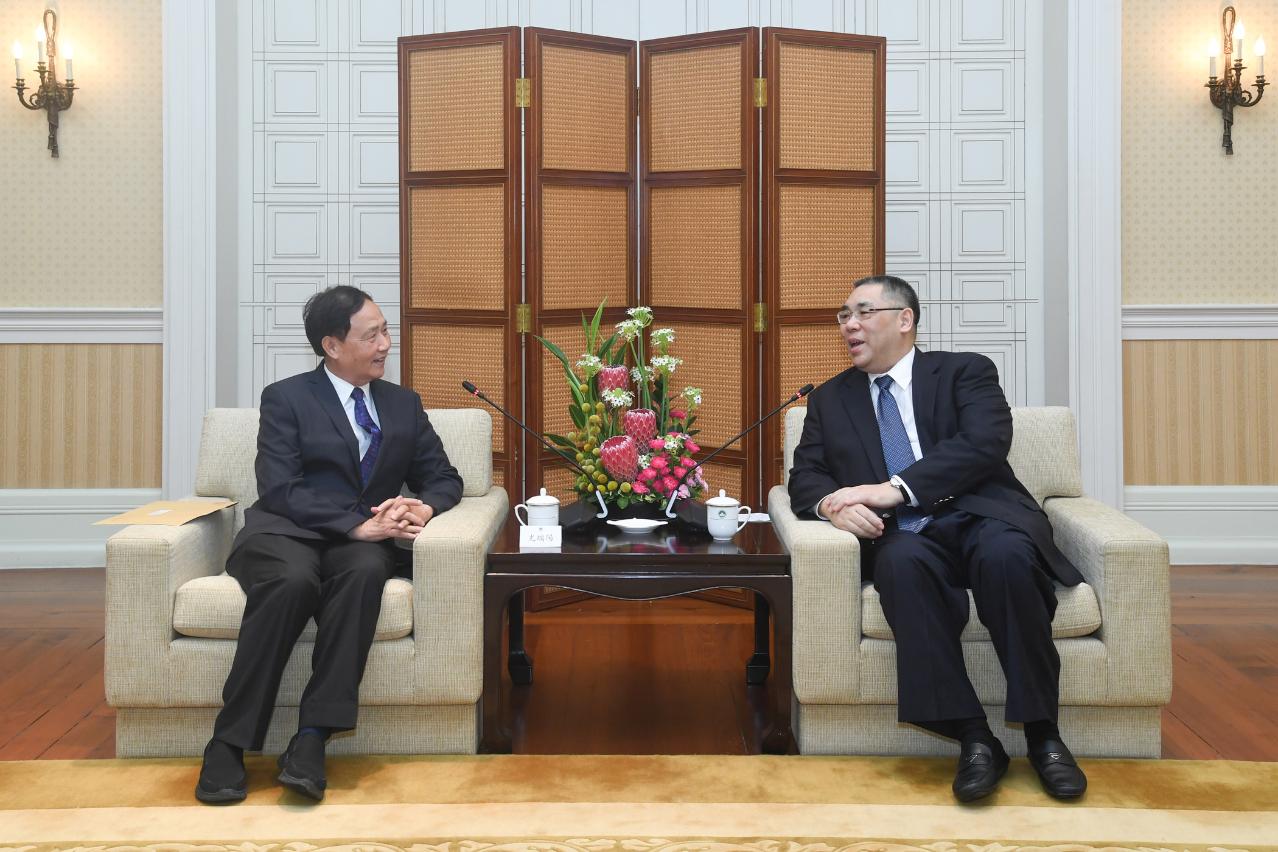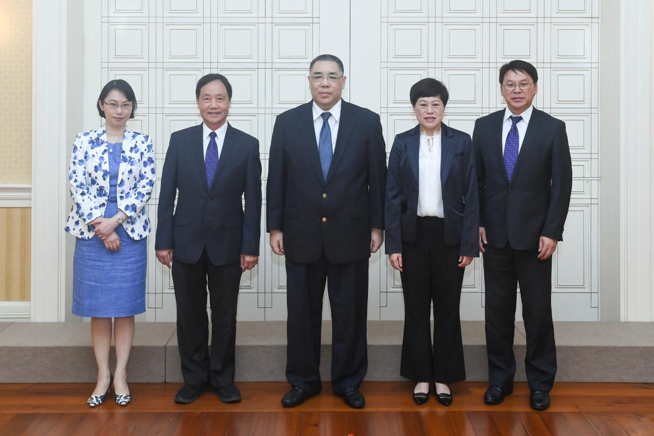 参加会见的还有行政长官办公室主任柯岚、濠江中学副校长陈步倩。