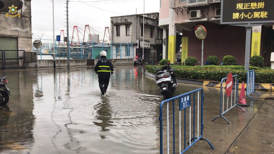 每月潮汐周期,内港一带都会出现不同程度的海水倒灌。于今天早上九时,因海水倒灌严重,治安警察局交通厅在受影响一带实施临时封路措施。