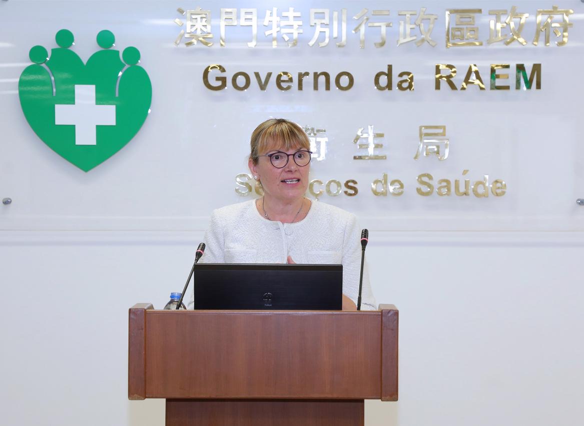 李展润在致辞中特别感谢Lyn Westcott教授来澳,与出席者分享英国应对人口老龄化的宝贵经验。他表示,随着澳门社会发展、医疗技术提升、健康水平改善,澳门居民人均预期寿命居世界前列,达83.4岁,根据统计资料,在2017年本澳65岁及以上的老年人口占总人口10.5%,按照联合国定义,澳门已经步入老龄化社会,预计患有慢性病、失能及失智的人士会随之增多。一直以来,卫生局非常重视居民身心健康,为应对人口老龄化所带来的各种机遇和挑战,致力推动医疗卫生体系建设,持续加大资源投入,提升医疗水平;不断完善健康覆盖网络,推进国际交流与区域合作,致力构建“健康澳门、幸福家园”。今年5月,卫生局派员到英国考察,与英国普利茅斯大学签订合作备忘录,加强双方在未来就医疗、人员培训、学术研究等领域交流合作。普利茅斯市人口老化情况严重,在市政府、社区组织、大学和医院共同推动下,为失智症患者以及照顾者提供周全服务,取得良好的社会效益。于2016年荣获英国失智症友善城市称号。普利茅斯大学是英国英格兰西南部规模最大的公立大学,附属医院的医疗技术力量雄厚,并承担区域性医学教学和培训任务的大型综合性医院。为此,希望藉着是次经验分享的机会,邀请本澳社服机构人员共同加强两地交流,吸取外地先进经验,提升本澳医疗人员老年医学知识和水平,增进居民健康福祉。