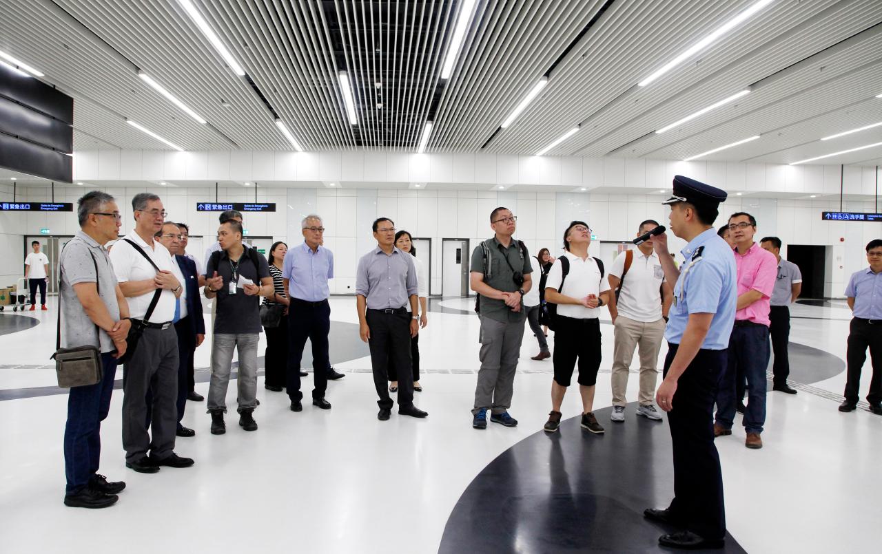 委员会一行廿余人先后参观了新城A区、港珠澳大桥珠澳口岸人工岛澳门管理区边检大楼的通关及卫生检疫等设施,以及口岸管理区东停车场。期间由土地工务运输局、建设发展办公室、交通事务局以及海关等部门代表分别介绍新城A区规划,及口岸管理区和边检大楼的总体建设情况、道路和交通配套、查验设施、创新通关模式及卫生检疫设备等。