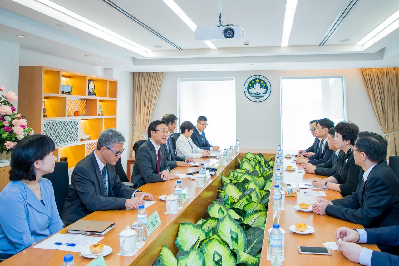 社会文化司司长谭俊荣7月19日在特区政府总部会见广西壮族自治区党委常委、宣传部长范晓莉一行,双方就加强桂澳旅游推广培训、文化交流等交换意见。