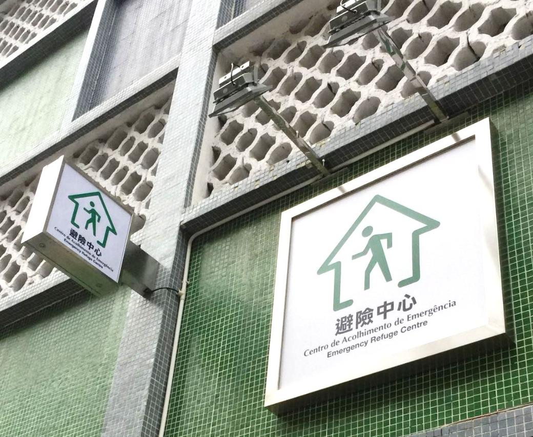 社会工作局人员陆续在16个避险中心外墙加装招牌,让公众人士得悉中心的所在位置,当特区政府宣告台风期间风暴潮低洼地区疏散计划时,各避险中心会对外开放,供有需要的居民可自行前往。分布在澳门半岛有9个避险中心,包括有青洲避风中心、培正中学、海星中学、利玛窦中学、慈幼中学、理工学院体育馆、中葡职业技术学校体育馆、塔石体育馆(A馆)及塔石体育馆(B馆)。3个位于氹仔区分别有氹仔及路环社会工作中心(氹仔分站)、奥林匹克体育中心、氹仔创福运动培训中心。4个设于路环区有东亚运动会体育馆、氹仔及路环社会工作中心、保安部队高等学校及飞鹰培训基地。