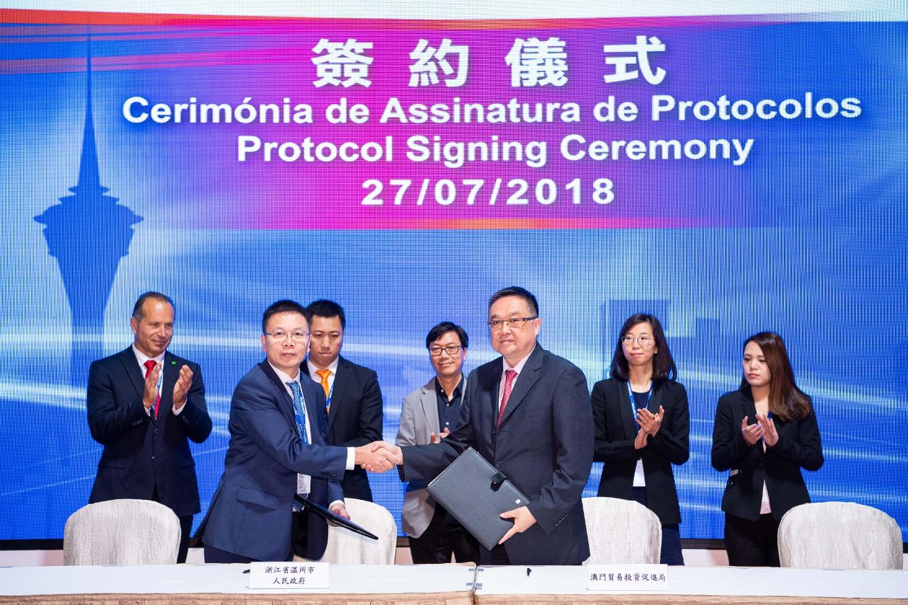 2018MFE透过网上商业配对服务平台于活动首日在商业配对洽谈区成功进行了65场会面。首日于签约仪式中安排了10份签约项目,内容涉及政府间的商务合作、推进澳门零售行业走进大湾区战略合作、酒店特许经营、饮品代理销售、澳门品牌参与活化旧区项目、3D打印设备代理、儿童摄影合作等,签约方来自中国内地、澳门及香港。