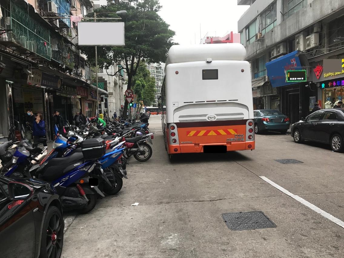 根据巴士公司反映,不少停泊在公共道路泊车位上的摩托车突出尾部,占据道路空间,致使巴士通行时受阻,需减速慢行,甚至有车长需要下车搬动车辆巴士才可继续行驶,例如:市场街、东望洋新街、得胜斜路左转入得胜马路的转弯位等地方经常有相关情况出现,阻碍交通及影响乘客的出行时间。呼吁摩托车驾驶者留意,顾己及人,自觉把车辆停泊在合适的范围内。