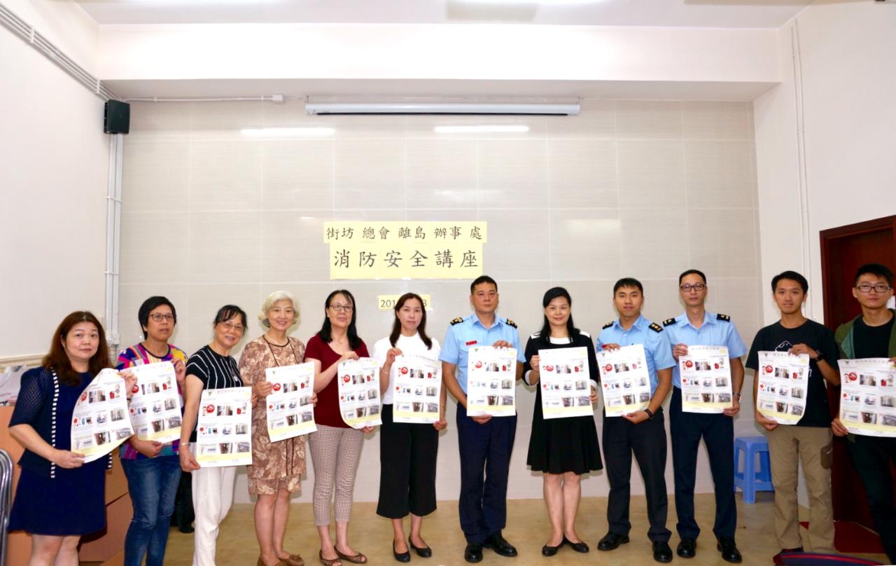 于本年8月13日及16日,消防局派出官员分别拜访“街坊总会离岛办事处”及“民众建澳联盟社区消防安全主任”进行座谈,介绍盂兰节期间的防火宣传工作及行动部署,以及听取坊会及社区消防安全主任就防火、灭火及救援等工作的意见,亦为坊会、团体及区内一带居民举办燃料安全知识讲座和救护知识讲座,以及讲解台风来临前的防灾准备及防灾知识,并向区内居民派发各类消防安全、防灾应急宣传单张,藉此加强居民的防火、救护、安全使用炉具及防灾避险意识,从而保障生命及财产安全。