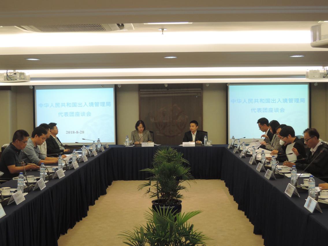 中华人民共和国出入境管理局往来港澳台处副处长王艳率团一行18人日前到访高等教育辅助办公室,与本澳高校代表举行座谈,瞭解本澳高校前往内地招生情况,并就优化学生申办赴澳签注程序等交换意见。