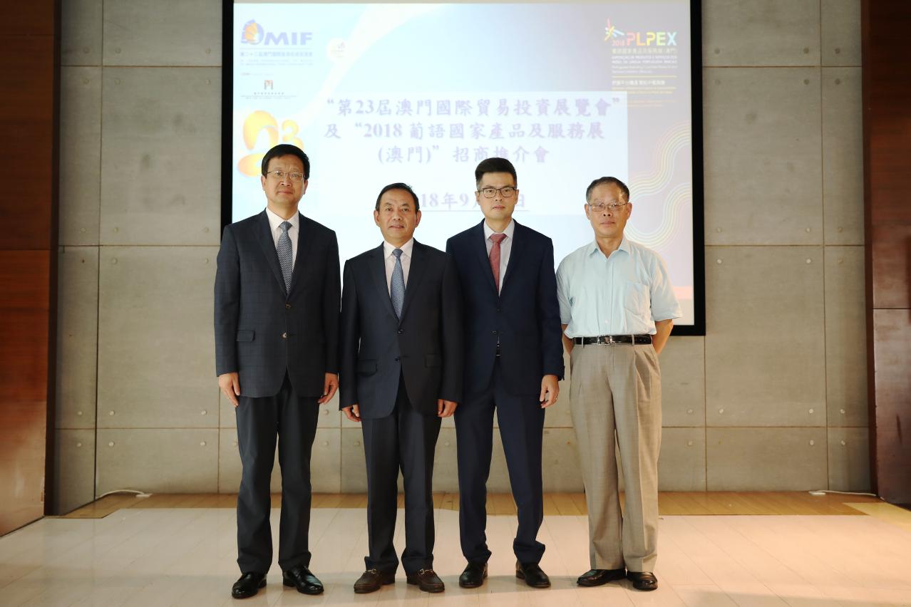 “第二十三届澳门国际贸易投资展览会”(23rd MIF)及“2018年葡语国家产品及服务展(澳门)”(2018 PLPEX)将于2018年10月18至20日在澳举办。为宣传推广该展会活动,澳门贸易投资促进局于9月19至21日到访上海并举办招商推介会,藉此加强沪澳双方经贸交流合作。