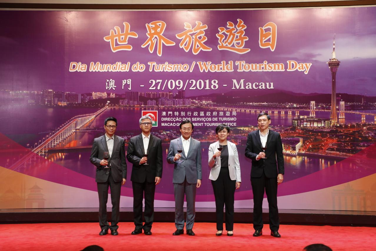 社会文化司司长谭俊荣出席今日晚宴活动支持“世界旅游日”,与旅游业界及传媒代表等数百位嘉宾同庆一年一度的全球旅游盛事。旅游局局长文绮华致词时感谢澳门旅游同业多年的支持。晚宴上,由六家大型旅游企业呈献以“2018澳门美食年”为题的表演环节,展示澳门多元化的旅游休闲元素及旅游从业员多才多艺的一面。