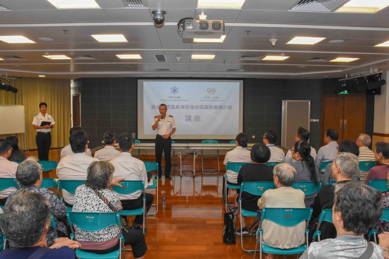 踏入十月,本澳仍然处于台风季节,为提高市民对“台风期间风暴潮低洼地区疏散撤离计划”的认识,于10月4日下午,澳门海关联同社会工作局于下环活动中心举办宣传讲座,向84名参与的市民讲解计划内容、注意事项以及介绍防灾工作,让居民于风暴潮来袭时更能配合当局指示,有序安全撤离。