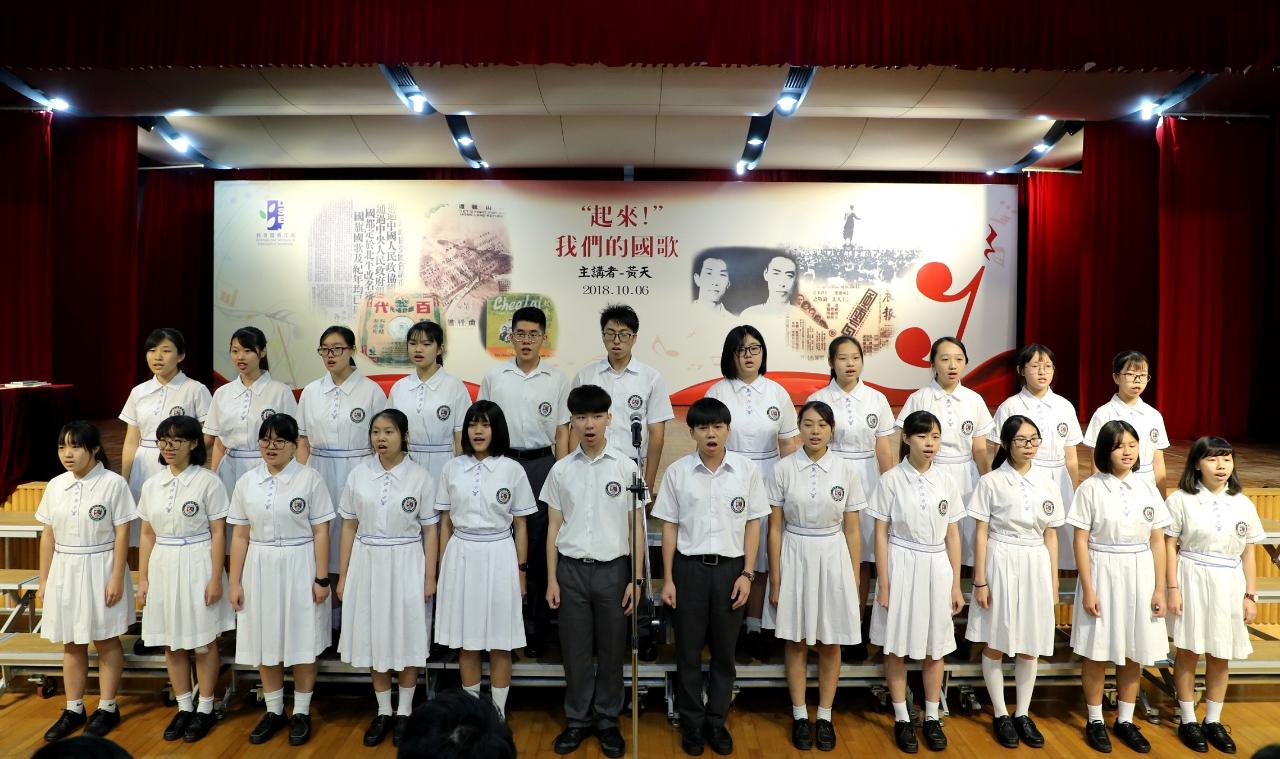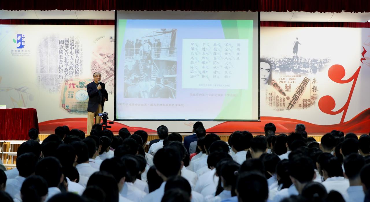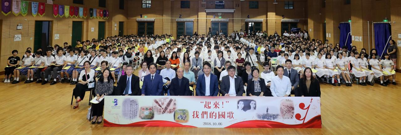 为让澳门教学人员及学生了解国歌的历史和精神内涵,培养其爱国主义情怀和增强对国家认同感,教育暨青年局于2018年10月6日下午假澳门浸信中学举办“‘起来!’我们的国歌”讲座,邀请了中日关系史专家黄天先生担任主讲嘉宾,出席的中学生、学生会代表及教学人员多达600人,教青局副局长龚志明、代副局长江毅,以及多位主管人员同场参与。