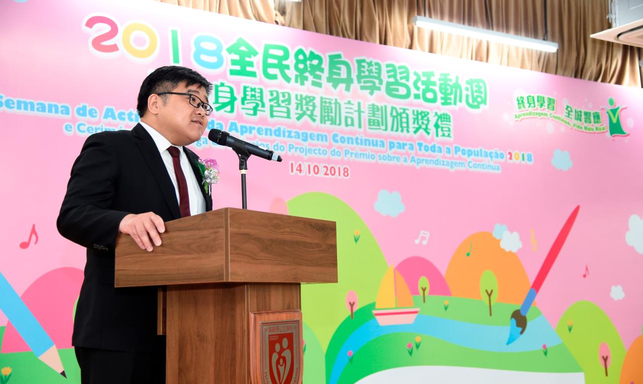 “2018全民终身学习活动周”推广日暨“终身学习奖励计划”颁奖礼于10月14日在郑观应公立学校举行。出席的主礼嘉宾包括:教育暨青年局教育厅厅长江毅、文化局公共图书馆管理厅厅长邓美莲、澳门成人教育学会理事会主席梁官汉、澳门成人教育协会理事长徐永达、澳门持续教育协会副理事长苏贤、澳门街坊会联合总会理事长吴小丽、澳门工会联合总会北区办事处赵兰瑛主任、澳门妇女联合总会副理事长张佩萍、新华夜中学校长李明基、创新中学副校长梁碧珠、商训夜中学主任许伟铭、澳门终身学习者协会会长周和根及珠海开放大学副校长陈华。嘉宾分别向获奖的市民颁奖,以表扬在工余或课余时间好学不倦的市民,本年度“终奖计划”合共194人次获奖。获奖者于现场分享学习心得,让参与者见证其学习成果。此外,亦有各项舞台表演及多个以终身学习为主题的游戏及工作坊,吸引了不少市民到场参加。