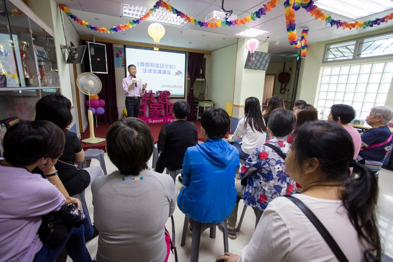 为更近距离向居民推广与日常生活息息相关的法律知识,法务局于10月12日派员到澳门妇联北区家庭服务中心举办“婚姻制度话你知”专题讲座,对象为该中心的会员及其家属。专题讲座分为两部分,第一部分由法务局代表就有关法律作讲解,内容包括《民法典》规定的各种婚姻财产制、夫妻债务、离婚(两愿离婚和诉讼离婚)、配偶及子女的扶养等,且亦讲解了涉及诉讼离婚时与司法援助相关的规定。第二部分为答问环节,与会者分别就日常生活中遇到的婚姻法律问题,包括夫妻财产的处分和分配、夫妻债务由哪一方承担,以及离婚时就子女扶养费的安排、家庭居所的归属等积极提问,法务局代表均逐一作出回应,现场讨论气氛热烈。
