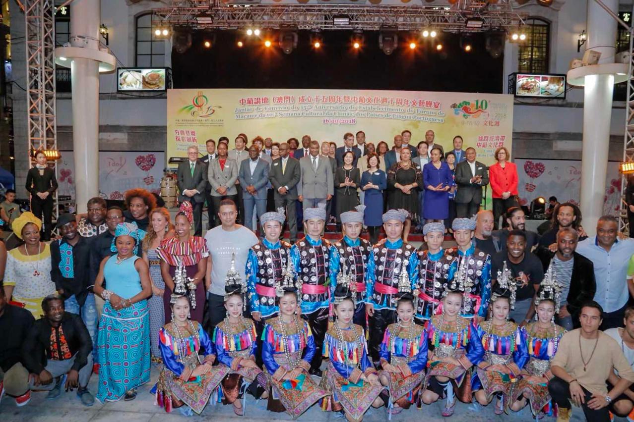 “中葡论坛(澳门)成立十五周年”暨“中葡文化周十周年”文艺晚宴于10月16日在澳门渔人码头励骏广场举行。中葡论坛(澳门)常设秘书处徐迎真秘书长与中央人民政府驻澳门特别行政区联络办公室经济部李华英副部长兼贸易处负责人、莫桑比克工业和贸易部长Dr. Ragendra de Sousa、各葡语国家驻华使节、驻澳门总领事等出席祝酒仪式。出席嘉宾还包括参与文化周协办单位代表以及中国与葡语国家艺术团体、澳门工商界和各社团代表等。