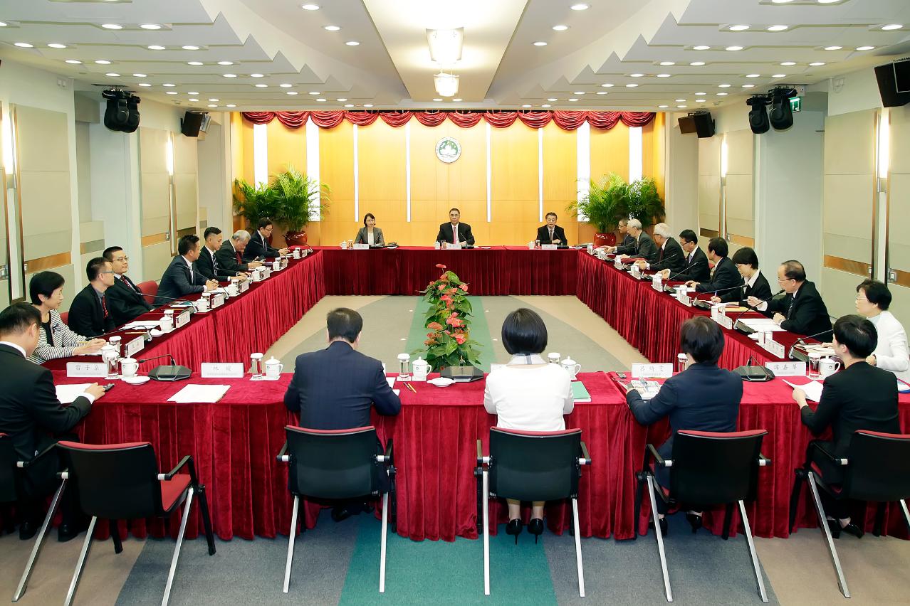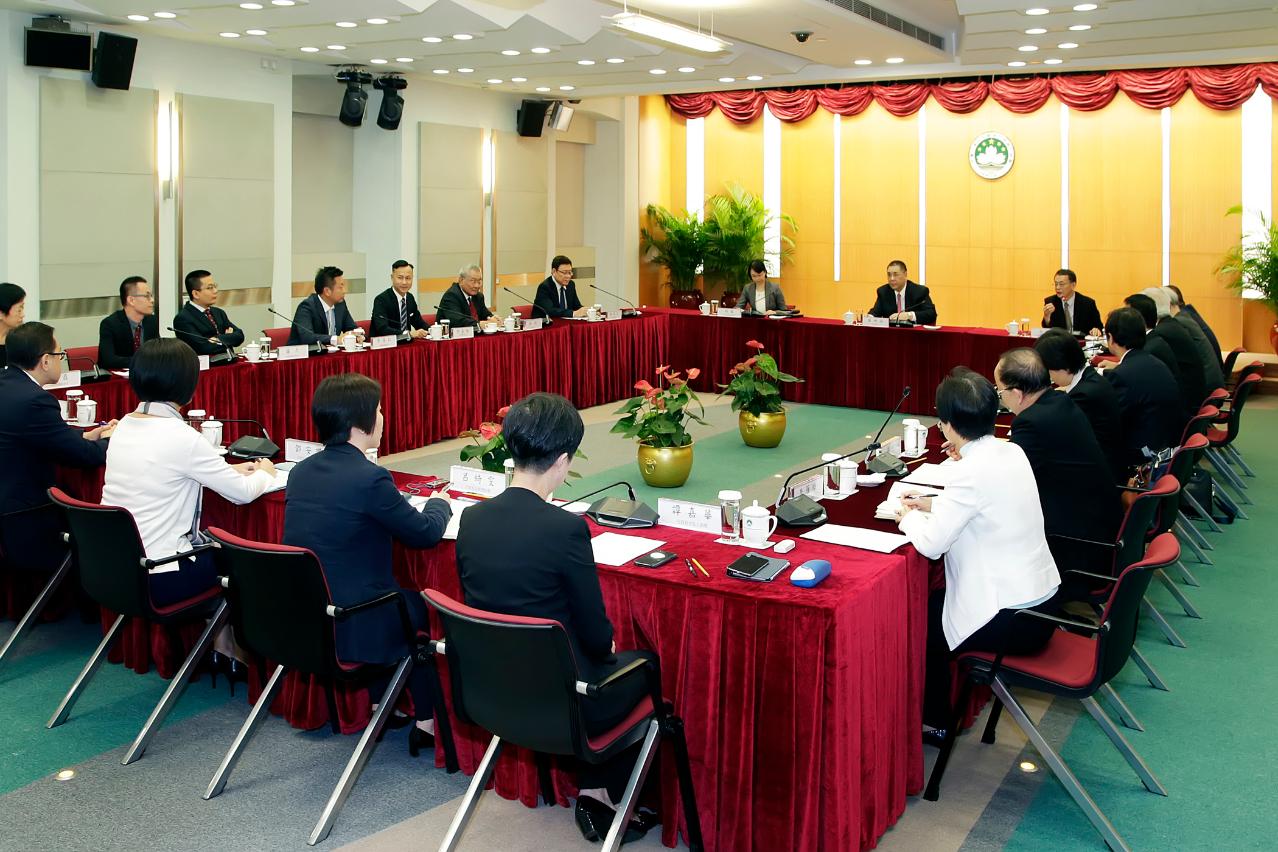 行政长官崔世安就制订明年度施政报告继续听取意见,今(18)日下午在政府总部与思路智库代表和澳门学者同盟的代表座谈,就推动创新创业、澳门更好融入大湾区发展和社会民生多项议题与专家学者交流。
