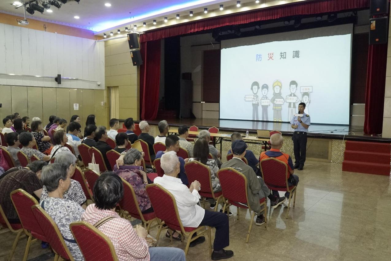 宣传讲座上,消防局代表向居民详细介绍了“台风期间风暴潮低洼地区疏散撤离计划”启动时的工作安排、目的及内容,以及讲解台风来临前的防灾准备、应急包清单、撤离路线选择的考虑要素及注意事项等防灾知识;介绍位于澳门半岛及离岛区的16个避险中心、需扶助人士集合点等信息,从而令居民更加清晰明白整个撤离计划运作流程。最后,消防局代表带领参与者前往青洲避险中心,实地参观中心设施及了解相关运作。