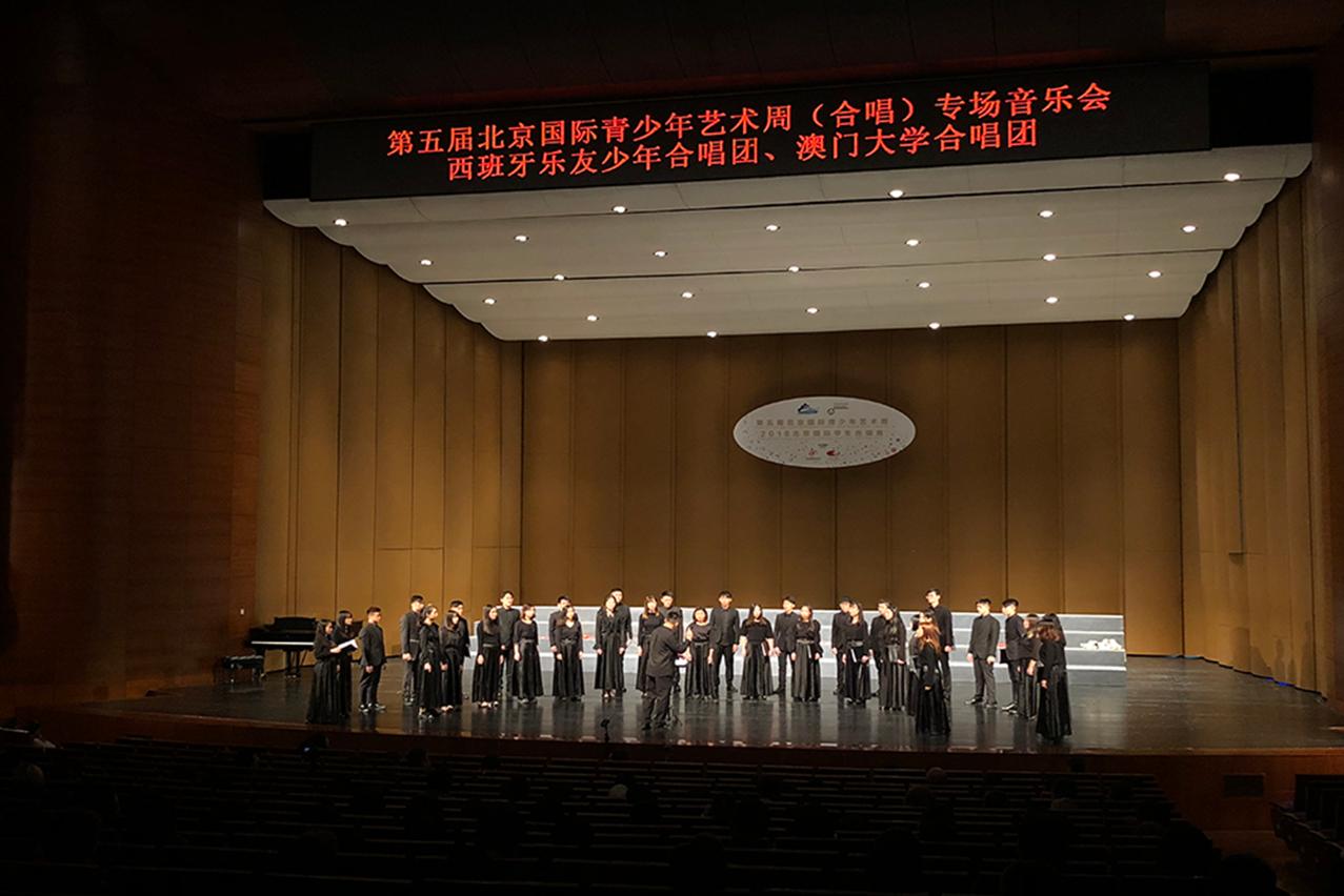 澳门大学合唱团日前到北京参加第五届北京国际青少年艺术周暨2018北京国际青少年合唱节,首次登上国家大剧院的舞台,与世界各地青年同台献技,并到当地多所高校交流,获益良多。