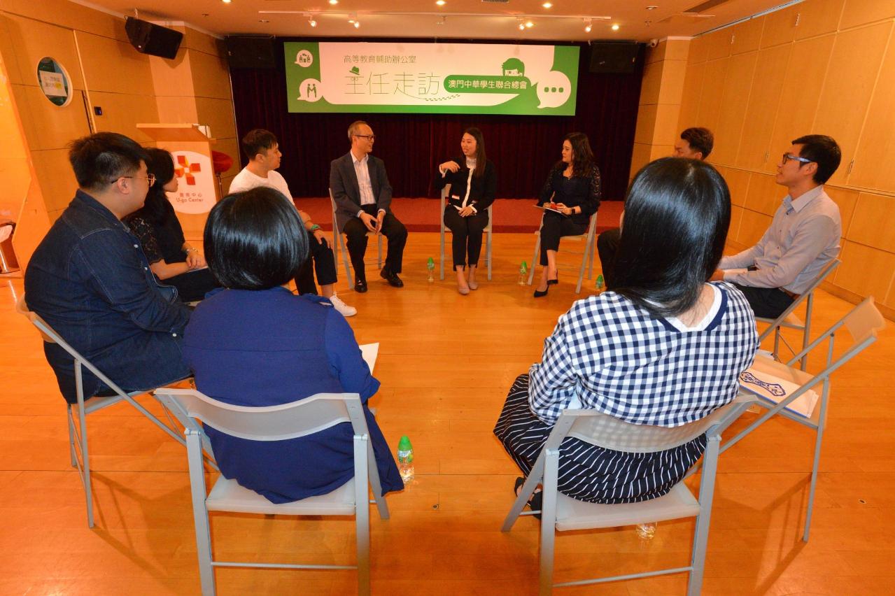 为进一步促进与本澳青年社团的互动交流,高等教育辅助办公室主任苏朝晖日前走访澳门中华学生联合总会(简称“学联”),并与学联骨干成员举行座谈,瞭解其会务工作,听取其对高等教育领域工作的建议。