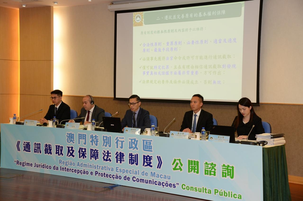澳门特别行政区政府就制定《通讯截取及保障法律制度》,先后于10月26及28日,在司法警察局总部举行最后两场公众咨询会,合共约150名市民参加,共有22名市民发言。